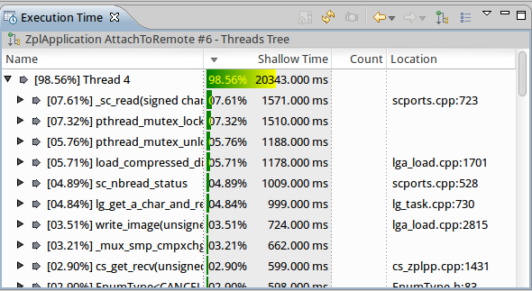 Hi- The application profiler doesn't show call count information in the Execution Time view inside Momentics (see attached screenshot). Here are the steps I've taken, can you please tell me where I've gone wrong, or what I've missed? I'm compiling using a Makefile using the -g -p switches. I refresh the IDE so it knows about the new binary files. I right-click on the debug binary and select Profile As-->Profile Configurations. I create a new profile under C/C++ QNX Attach to Remote Process via QCONN (IP). I'm connecting to my target on port 8000. Inside the tools menu, I've added the Application Profiler and selected Sampling and Call Count Instrumentation. I've tried setting the QCONN_PROFILER to /dev/profiler as suggested here: http://www.qnx.com/developers/docs/6.5.0/index.jsp?topic=%2Fcom.qnx.doc.ide.userguide%2Ftopic% 2Fprofiler_profile_already_running_.html I'm using Momentics IDE version 4.7.0, running QNX version 6.5.0SP1. Any suggestions or tips would be greatly appreciated. Thanks, Alex
