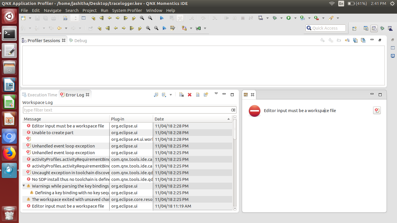 I am using QNX IDE Momentics. I tried opening tracelogger output file in QNX IDE Momentics. But it is throwing an