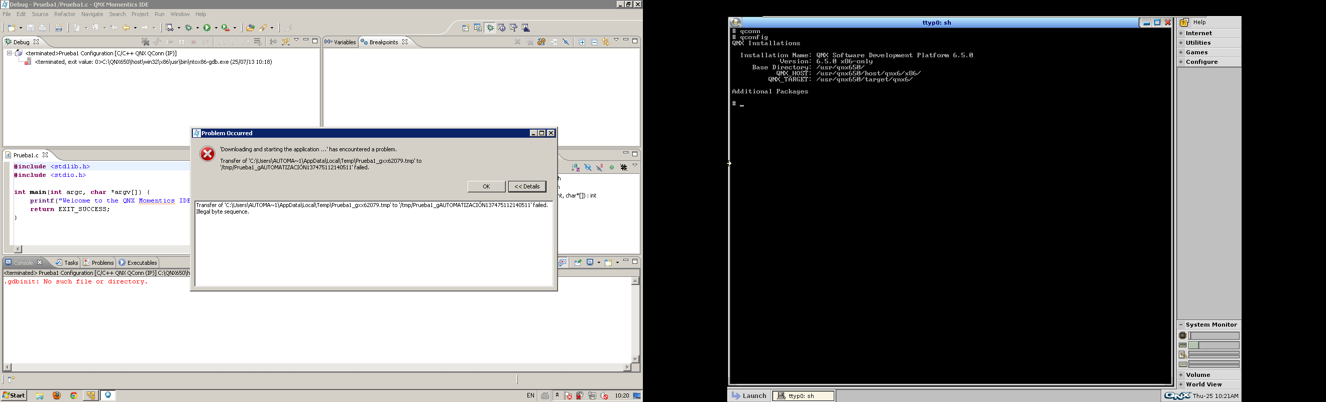 My first steps with QNX and my first problems: Error .gdbinit: No such file or directory