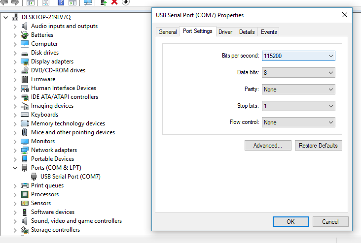 to use hyper terminal to connect to it with the same setting, the terminal responsed "Unable to connect to COM7, please