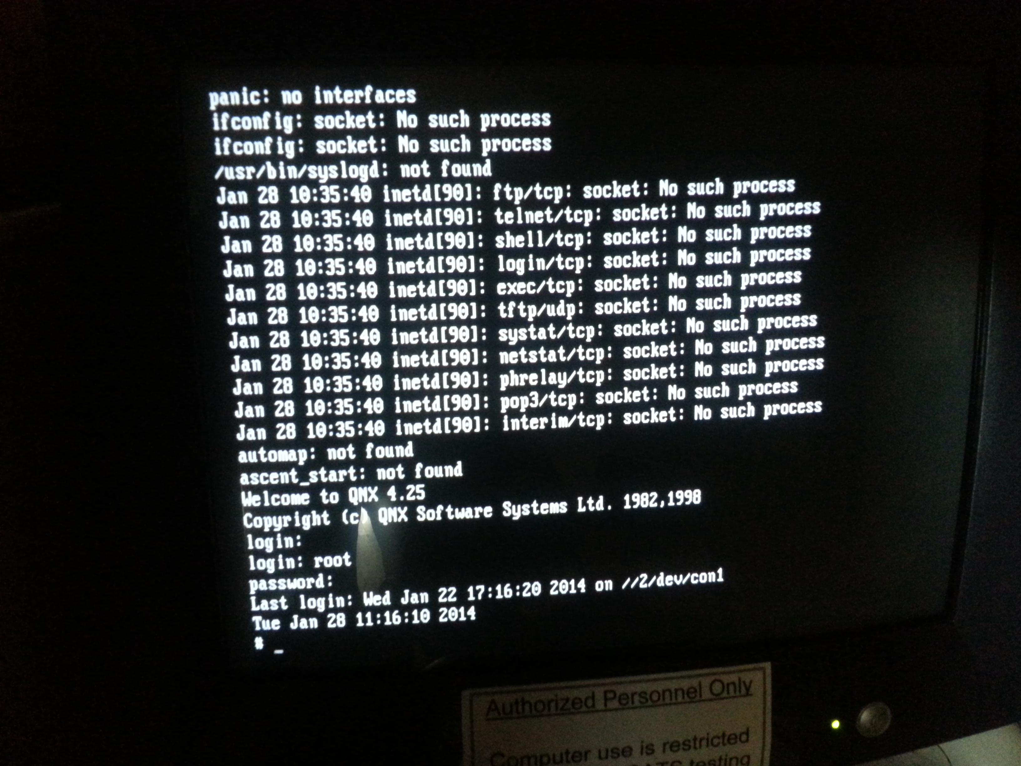 Objet : qnx 4.25 login problem