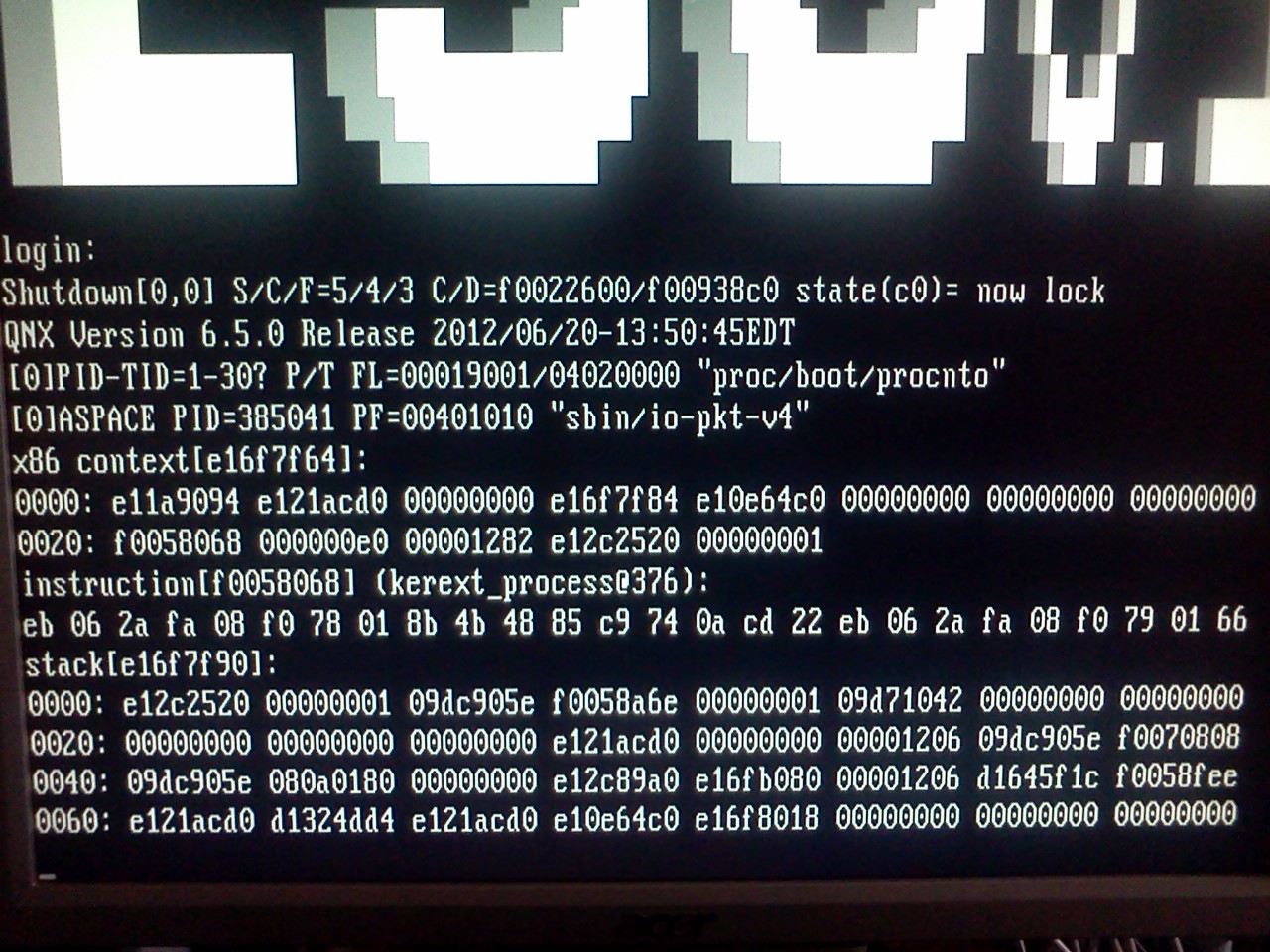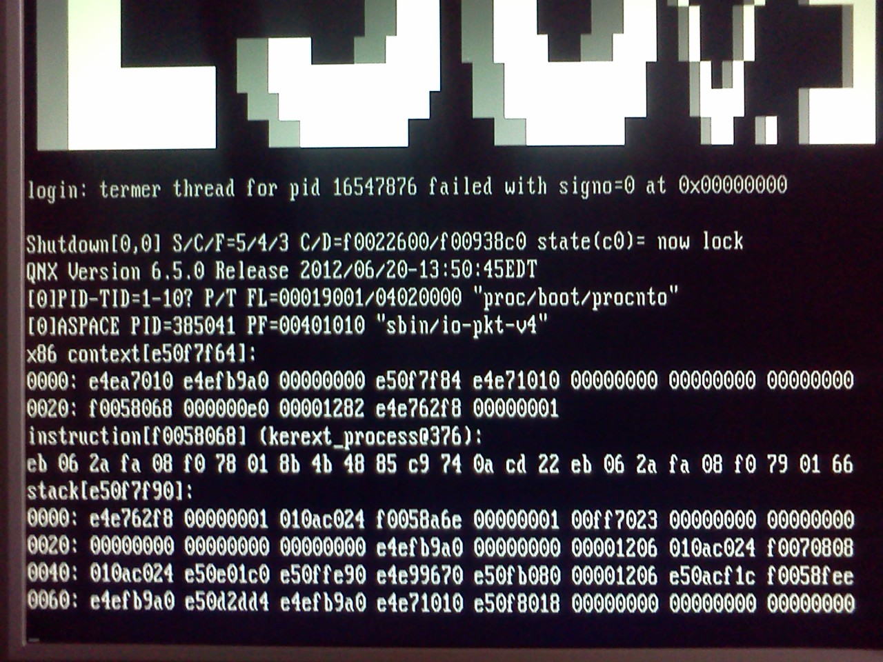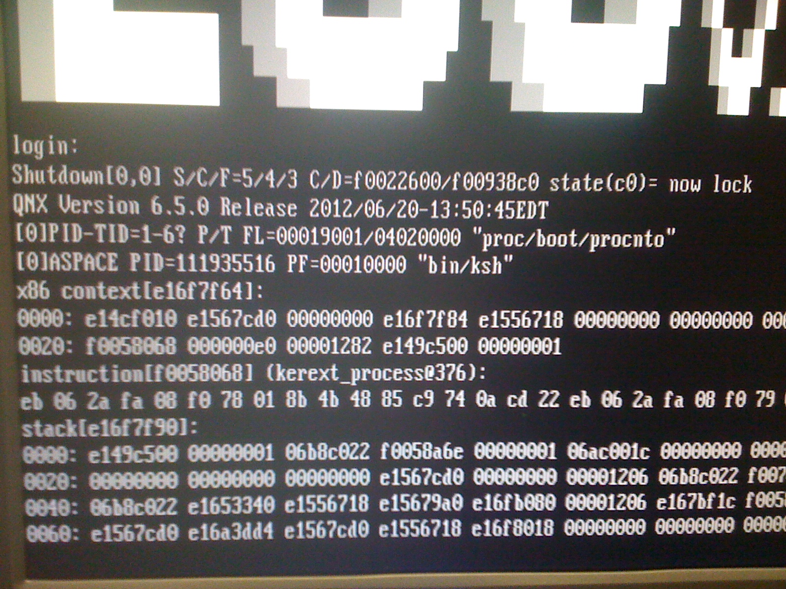 Kernel dump: S/C/F=5/4/3 (kerext_process@376) [QNX 6.5.0/x86]