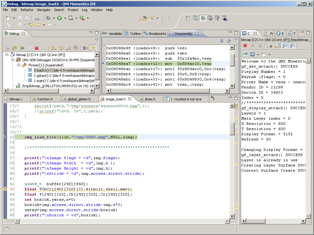 in the debugger screen stepping image_load_file(........); did not continued from here with placed printf(....) command