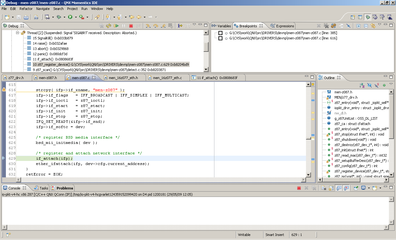 Feb 01 06:08:30 5 21 0 run fault pid 622635 tid 2 signal 6 code 0 ip 0xb033b879 tmp/io-pkt-v4-