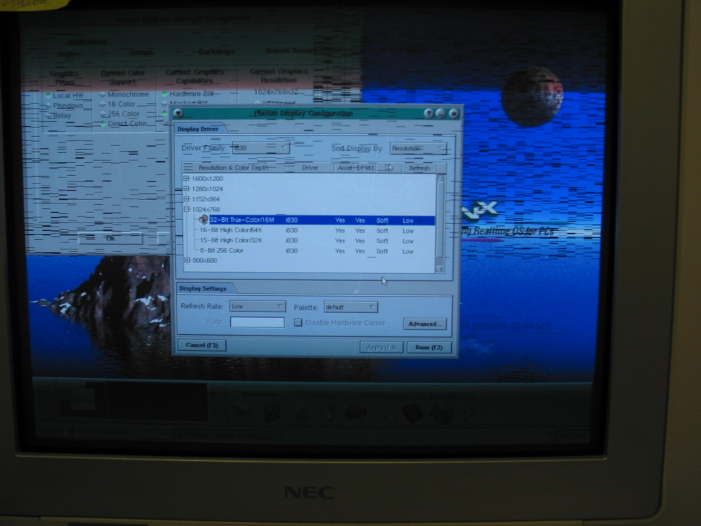 > with Pg.i830 driver released on the latest QNX4 Installation CD (the second